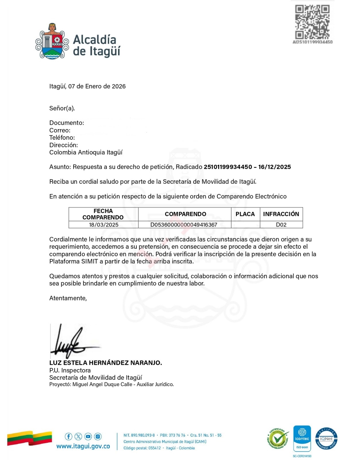 Actuamos como asesores administrativo en trámites de tránsito nos especializamos en la elaboración y, radicación de derechos de petición en materia de tránsito, dirigidos a la impugnación administrativa de comparendos, fotomultas, resoluciones y cobros coactivos, con base en causales como indebida notificación, no identificación del conductor y prescripción.